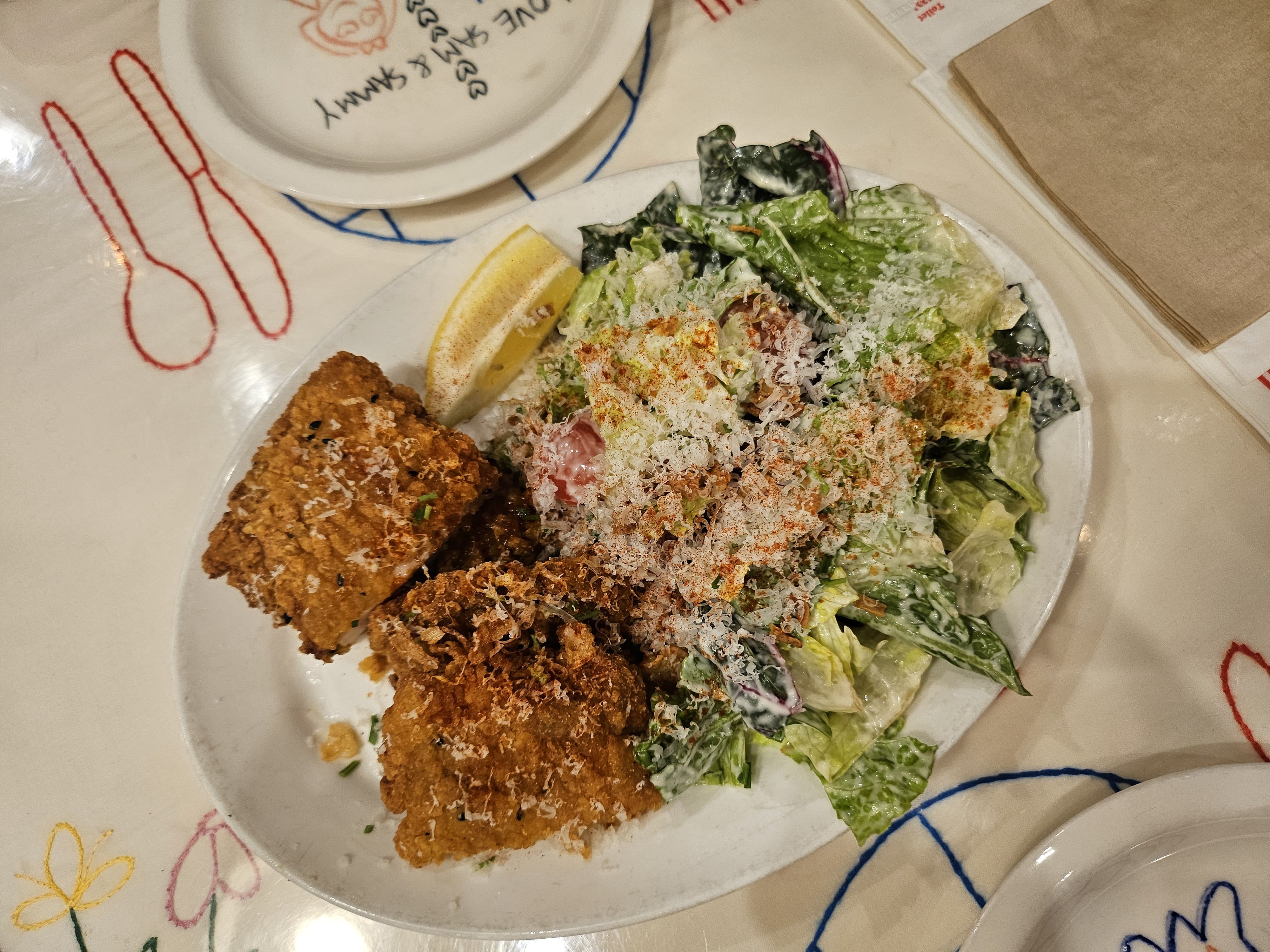 매장은 상당히 넒엇고 좌석도 많았습니다. 다행이 대기업이 입장할 수 있어서 바로 주문을 했습니다. sam sam sam에 방문해서 주문한 메뉴는 치킨 시저 샐러드, 미서부 클래식 라자냐, 쌔미가 사랑한 콘 치즈볼이었습니다. 미서부 클래식 라자냐는 쌤3의 대표 메뉴라고 할 수 있을정도로 유명했습니다. 치킨 시저 샐러드도 치킨의 바삭함이 좋아서 맛이 좋았습니다. 미서부 클래식 라자냐도 맛이 상당히 좋았습니다. 쌔미가 사랑한 콘 치즈볼은 연유가 가득해서 달콤하게 먹을 수 있어서 좋았습니다. 저렇게 3개의 메뉴를 샘샘샘에서 주문하니 다양한 메뉴를 맛볼 수 있었고 달콤한 메뉴와 짭조름한 메뉴 그리고 바삭한 메뉴까지 즐길 수 있어서 좋았습니다. 잠실에서 데이트를 고민중이시거나, 잠실에 방문 예정이신분은 샘샘샘을 방문해보셔도 좋을 것 같습니다. 오늘도 방문해주셔서 감사합니다. 좋은 하루 되세요.