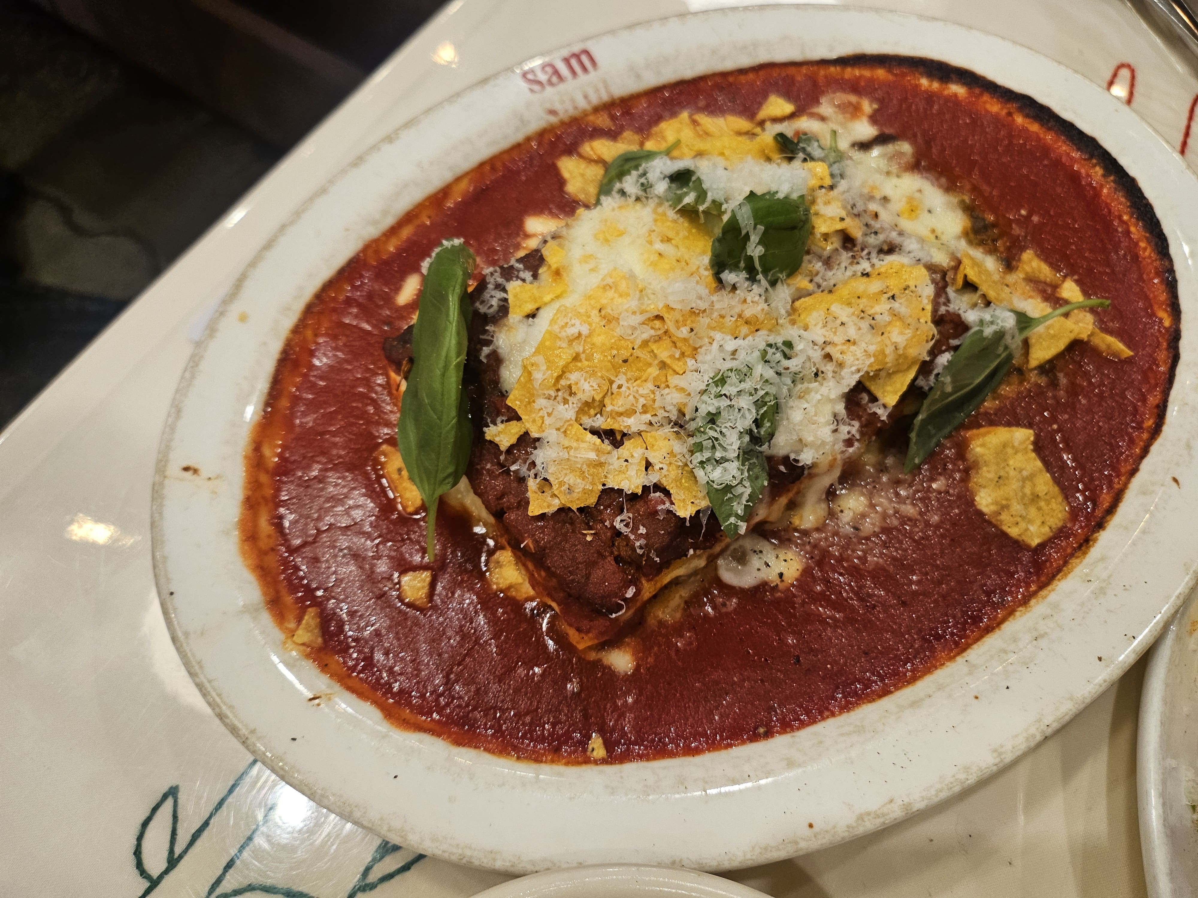 리코타 치즈와 다진 고기가 들어간 미서부 스타일의 쌤3 시그니처 라자냐