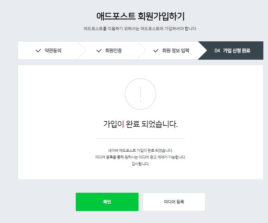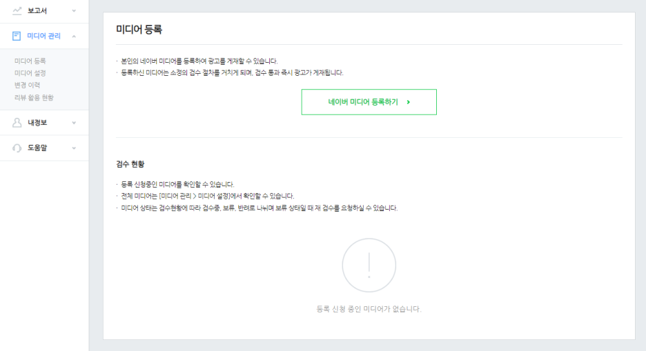- 블로그, 웹사이트 등 광고를 게재할 미디어 정보 입력
