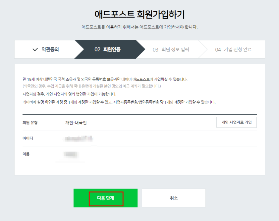 - 기본 정보(이름, 연락처 등) 입력 후 가입 완료