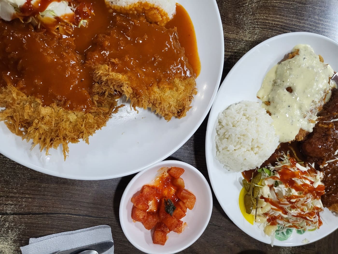 일반모듬정식 14500원과 청량돈까스 10000원을 시켜봤습니다. 일반모듬정식은 일반돈까스, 치즈돈까스, 생선까스가 포함된 세트였습니다. 3가지 맛을 한꺼번에 먹어볼 수 있어서 가성비가 좋은 것 같습니다. 돈까스는 주문 즉시 튀겨주셔서 음식이 나왔을때는 매우 바삭했습니다.