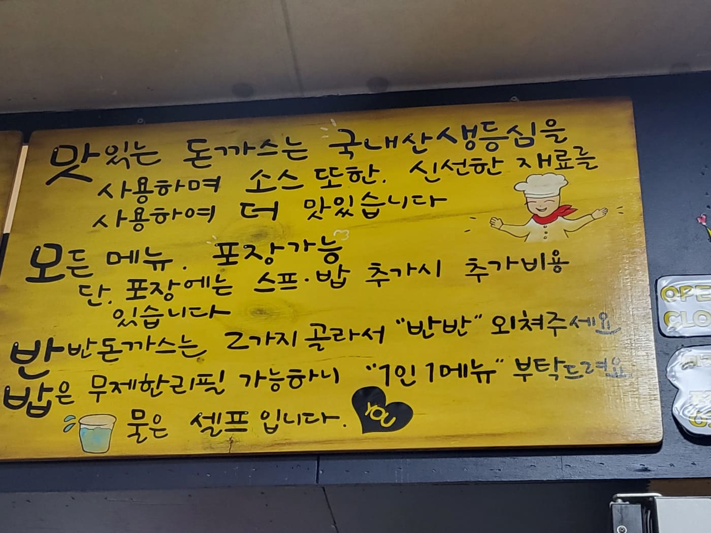 매장도 넓고 좌석도 많아서 매장에서 편히 식사도 가능하고, 저녁시간에는 포장을 하시는 분들도 많았습니다. 주변에 직장도 많고 집들도 많아서 퇴근길에 매장에서 식사하시는 분들과 포장해서 집으로 가져가시는 분들도 많았습니다. 대청역에 바로 튀겨주는 수제 돈까스 집은 맛있는 돈까스가 제일인 것 같습니다.