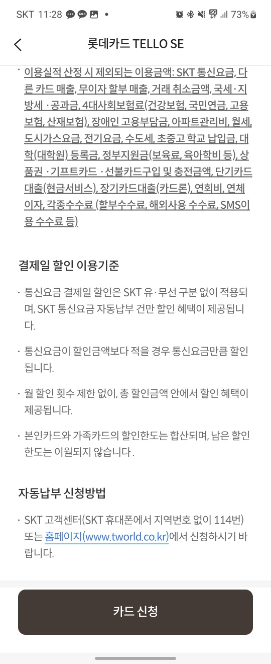 롯데카드 TELLO SE 카드 자동납부 신청방법