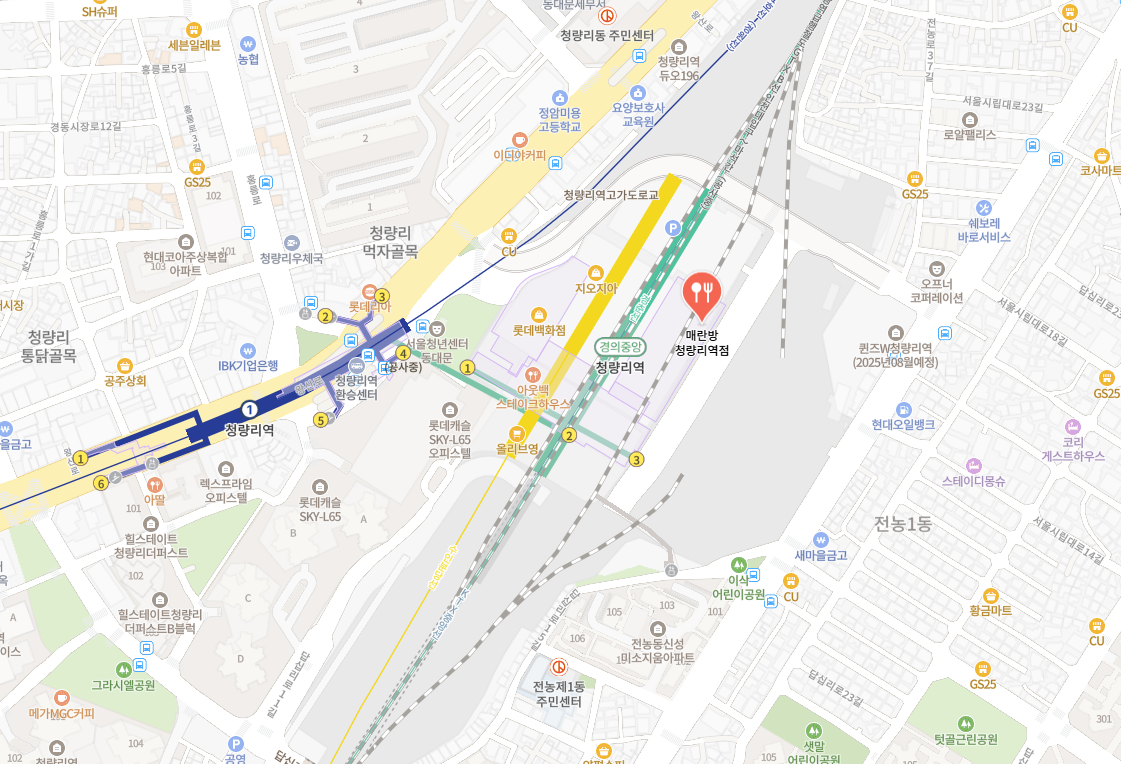 안녕하세요 알두쓸모입니다. 오늘은 서울 청량리역 맛집인 매란방 청량리역점에 방문한 후기에 대해 작성해 보도록 하겠습니다. 1호선 청량리역, 경의중앙선 청량리역, 경춘선 청량리역, 수인분당선 청량리역 3분 출구에서 129m 위치해 있습니다. 청량리역은 1호선, 경의중앙선, 경춘선, 수인분당선이 지나는 노선으로 많은 유동인구가 많은 역입니다. 따라서 맛집도 많이 있고, 쇼핑하기에도 좋은 곳입니다. 청량리역에는 롯데백화점도 있어서 데이트 코스로도 좋은 곳 같습니다. 매란방 청량리역점은 청량리역사 내 3층 커넥트 플레이스 식당가 안쪽에 위치하고 있고, 유아방도 있어서 가족단위로 방문하기도 좋은 곳 같습니다.
