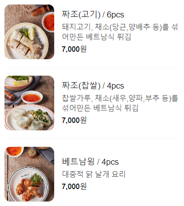 저는 분타 일원점에 방문하여 토마토 쌀국수, 소고기 볶음면, 짜조를 주문했습니다. 토마토 쌀국수에는 큼직한 새우가 들어가서 현지에서 먹는 것과 같은 느낌이 났습니다. 소고기 볶으면은 너무 짜지 않고 너무 달지도 않아서 간단하게 먹기에 아주 좋았습니다. 짜조도 육즙이 가득해서 사이드 메뉴로 같이 시키기에 좋을 것 같습니다.