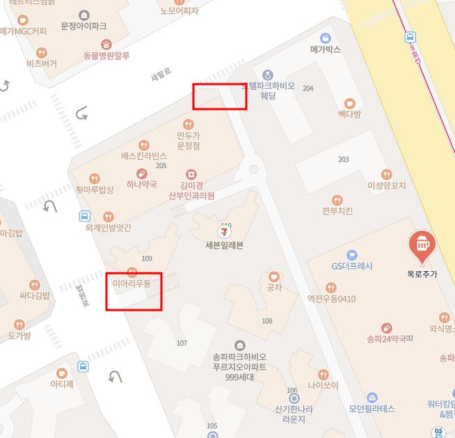 미아리 우동쪽 / 만두가 문정점쪽으로 차량 출입이 가능하여, 지하 주차장에 주차가 가능합니다.