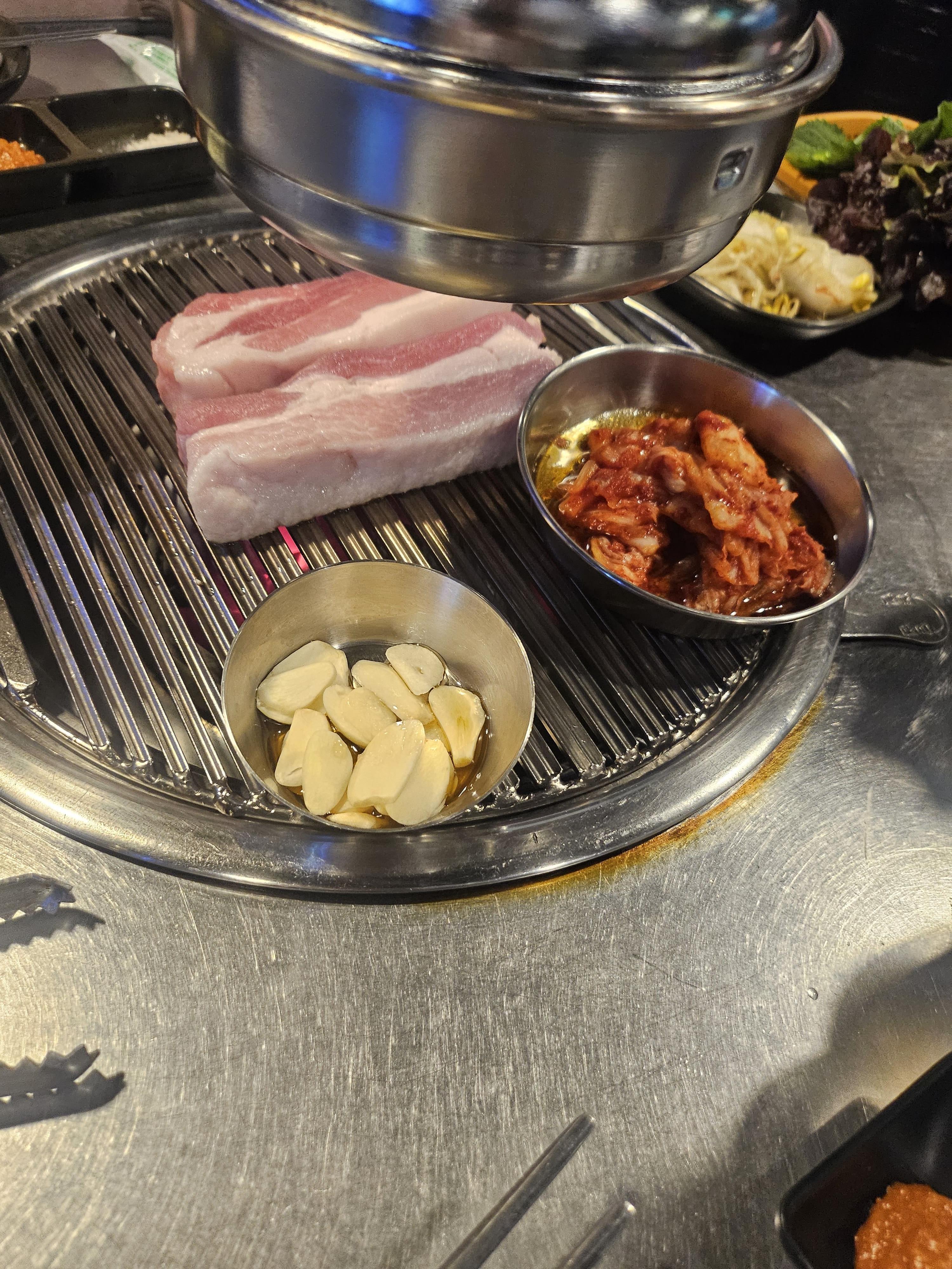 삼겹살도 두툼하고 무엇보다 직원분이 직접 고기를 구워주셔서 좋습니다. 맛있어 보이는 두께로 직접 잘라주시고, 틈틈이 와주셔서 고기를 구워주십니다.