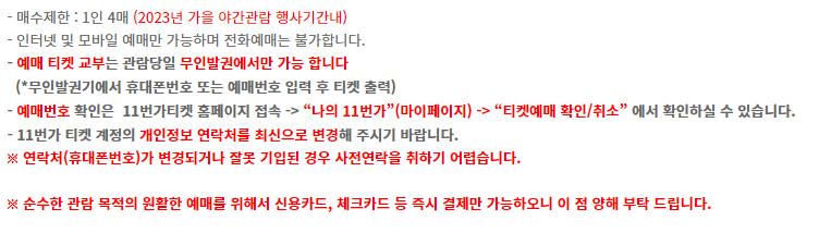 예매 사이트는 아래 링크를 참고 바랍니다. 11번가 예매 사이트로 이동됩니다.