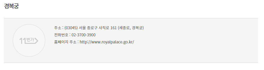 주소 : 서울 종로구 사직로 161 (세종로, 경복궁)