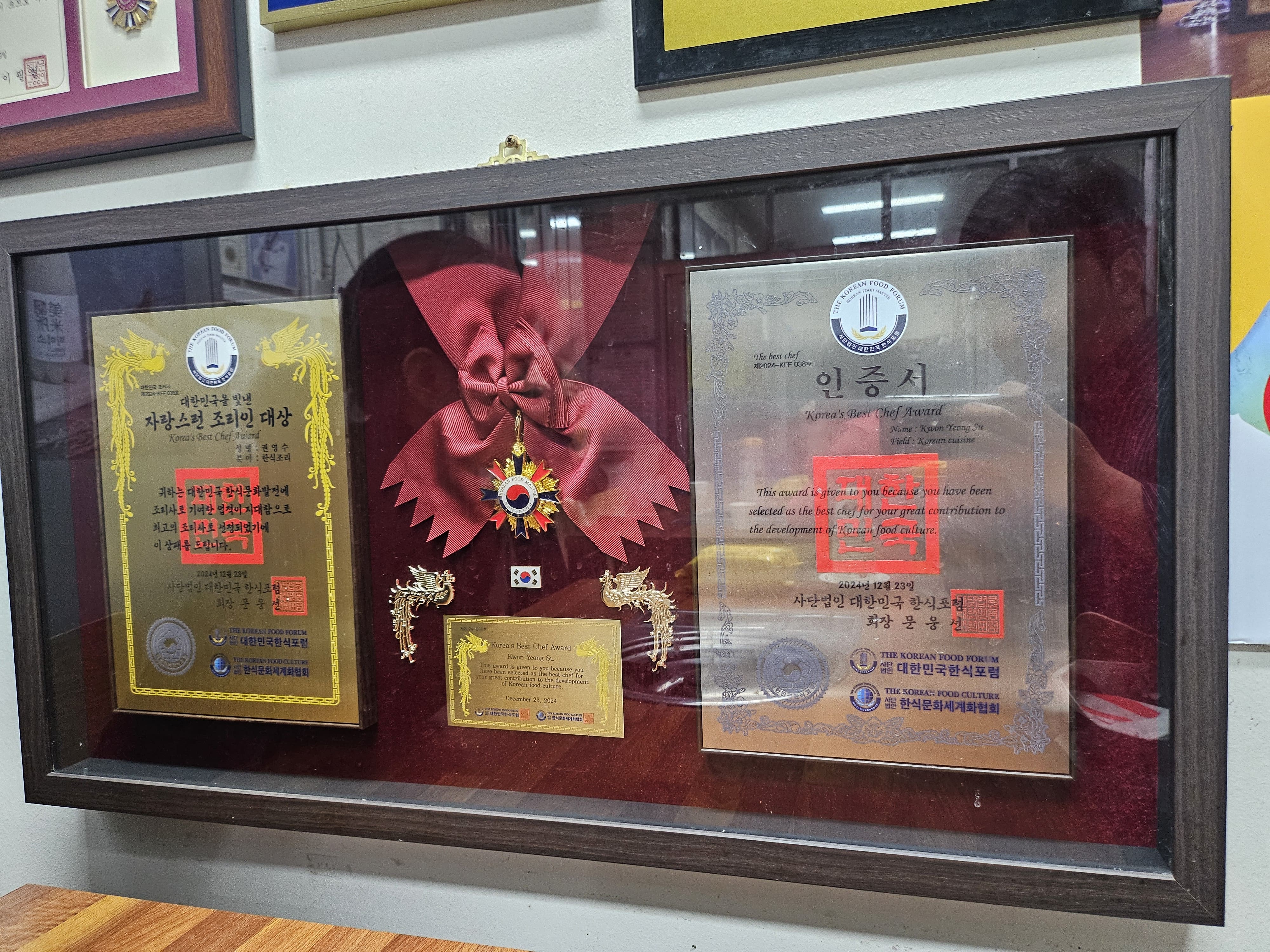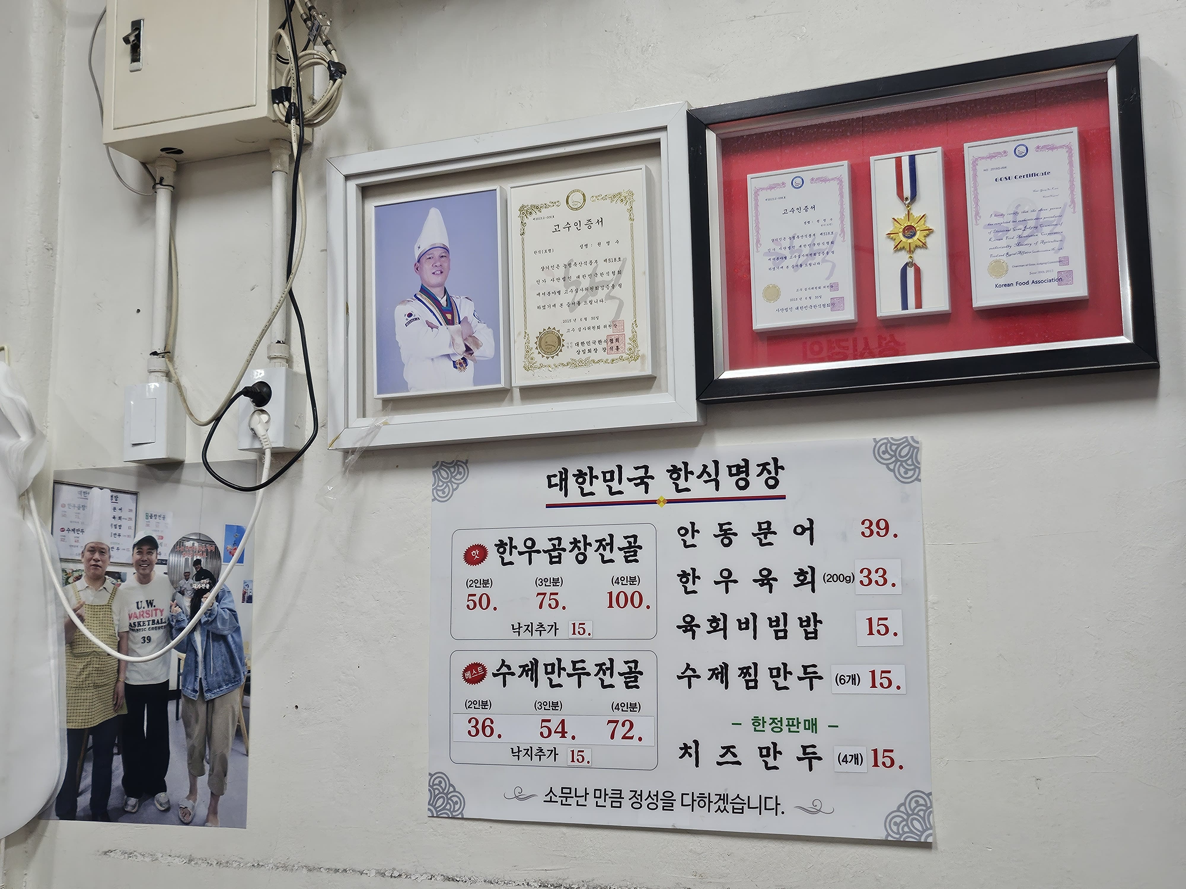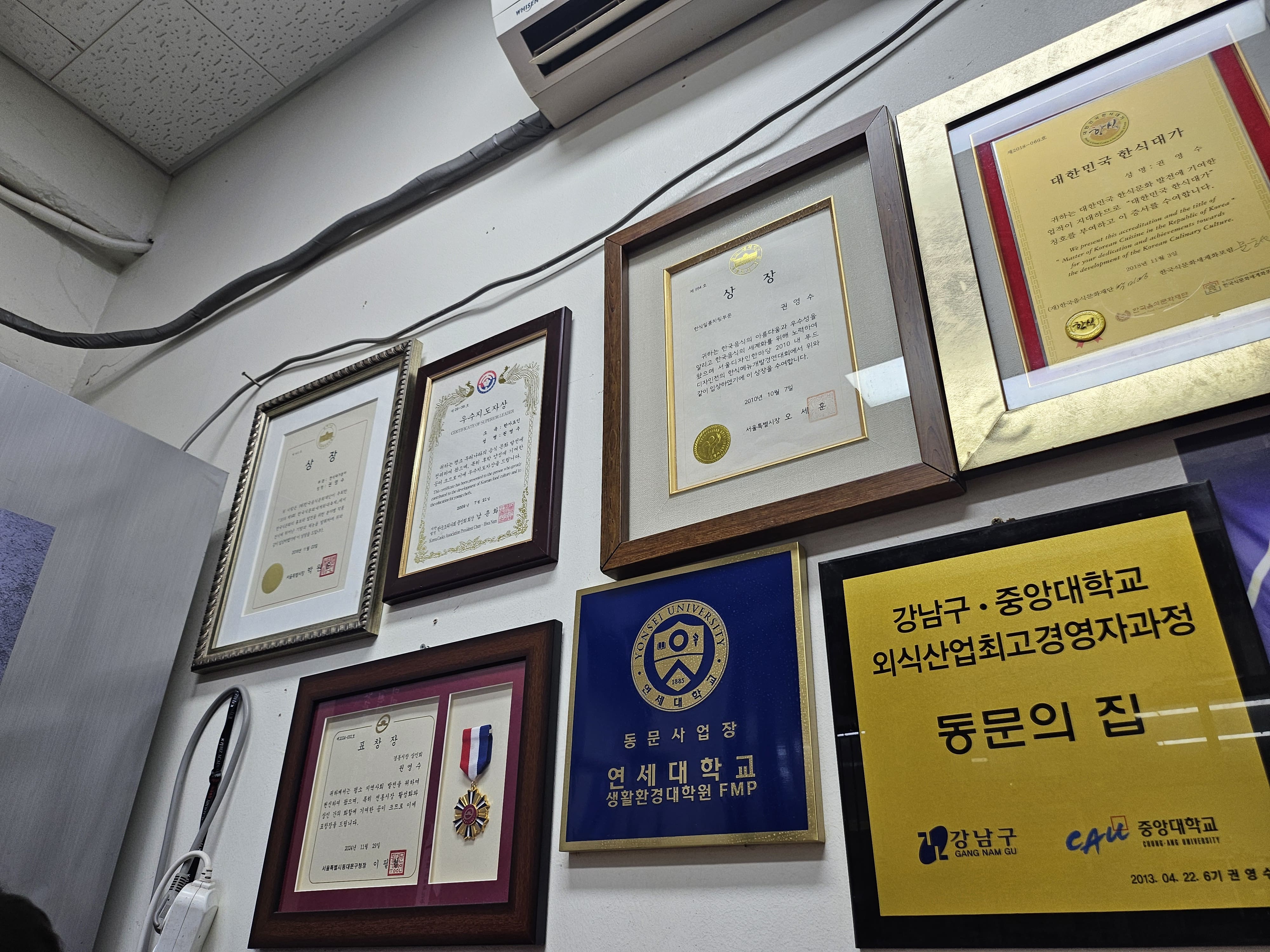 다양한 상장들과 인증서를 통해 정말 소문난 엄청난 맛집임을 알 수 있었습니다. 어쩌다가 방문하게 된 식당에서 이렇게 수준이 높은 분이 요리해 주시는 음식을 맛보게 되어 신기했고, 덕분에 경동시장에서의 경험이 오래 남는 것 같습니다. 청량리를 방문하시거나 경동시장에 방문할 목적이 있으신 분들이라면, 경동시장 권영수 대가전골에 방문해 보시는 것도 좋을 것 같습니다. 감사합니다.