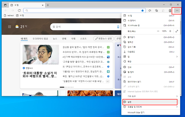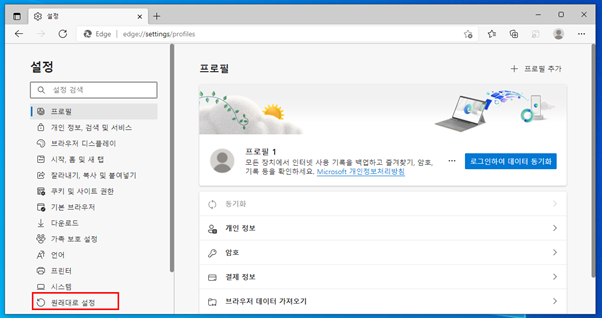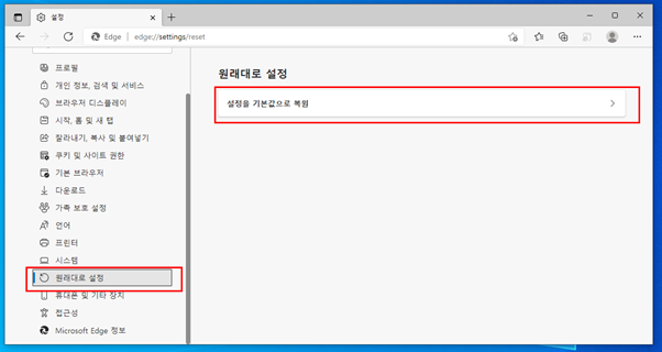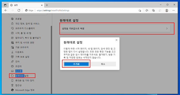 Microsoft Edge 프로그램 설정을 초기화 하는 방법입니다.
