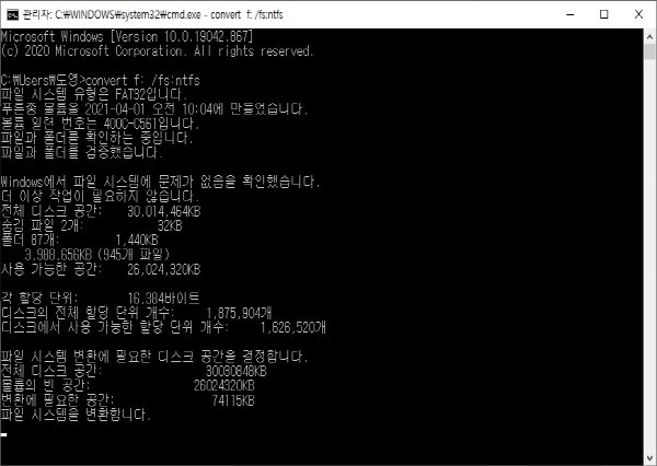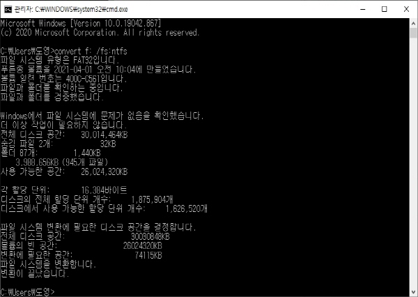 FAT32 to NTFS 변환