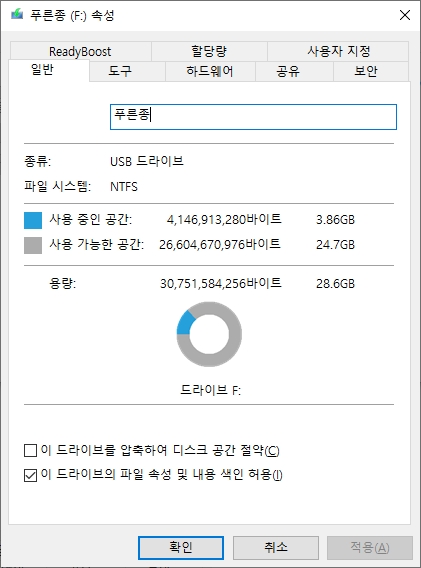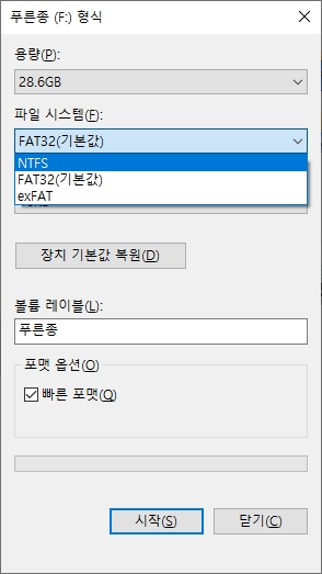 요즘에는 파일 용량이 증가함에 따라 다른 드라이브나 USB로 파일을 이동시킬 때 어려움을 겪는 상황이 종종 발생하곤 한다. 파일 시스템 형식이 fat32인 경우 4GB 이상의 파일을 복사할 수 없다. 파일 시스템이란 디스크에 데이터를 쓸 때 해당 데이터의 위치, 파일 이름의 형식을 결정하는 시스템이다. NTFS, FAT32의 차이점은 아래 글을 참고하도록 하자.