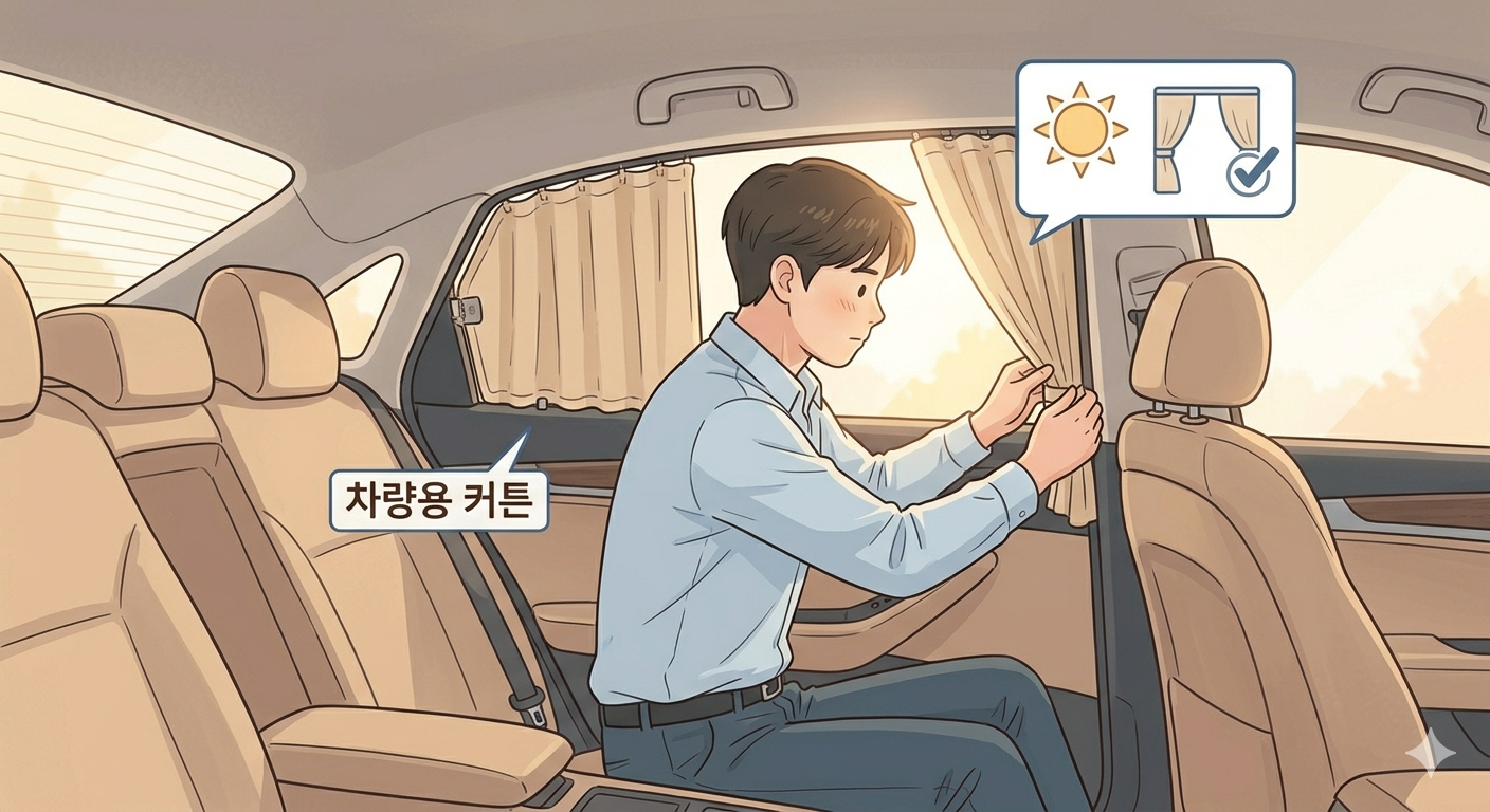 - 차량용 커튼: 햇빛에 취약한 신생아를 위해 차량용 커튼이나 햇빛 가리개를 설치하는 센스가 필요합니다.