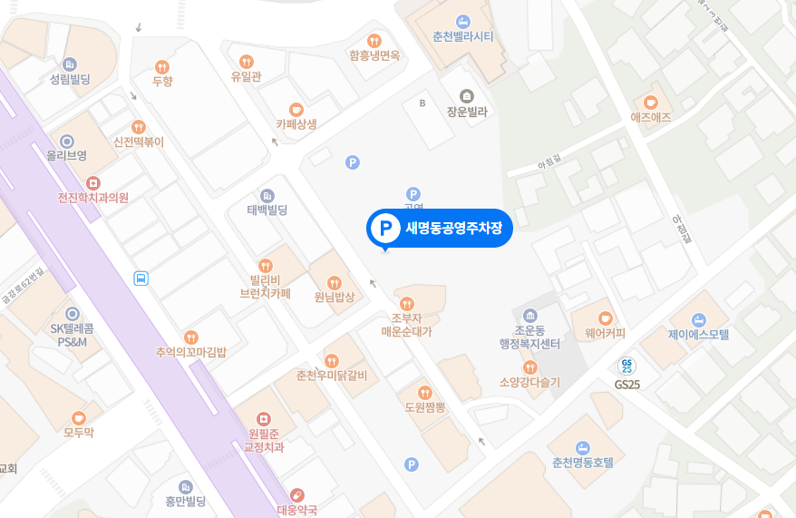 주말에 조부자매운순대가를 방문하시는 경우는 춘천시청이 주말은 주차가 무료이기에, 춘천시청 주차장에 주차하시는 것을 추천드립니다.
