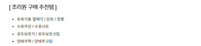 [ 조리원 구매 추천템 ]