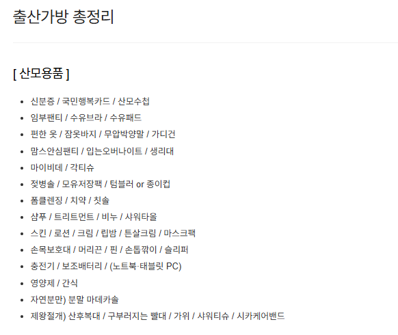 - 세면도구 / 수건 / 슬리퍼 / 매트리스 등 (* 조리원마다 상이하니 사전 확인 필수)