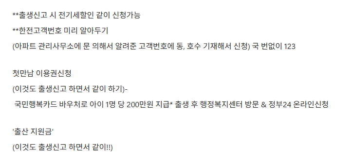 **출생신고 시 전기세할인 같이 신청가능