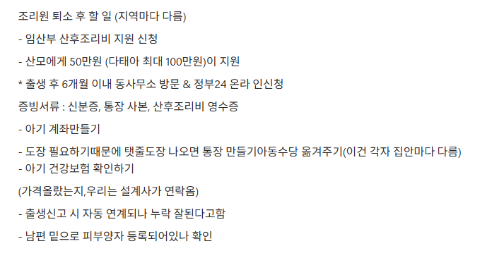 조리원 퇴소 후 할 일 (지역마다 다름)