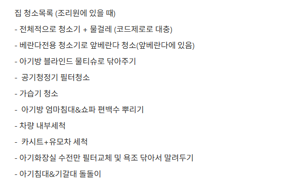 집 청소목록 (조리원에 있을 때)