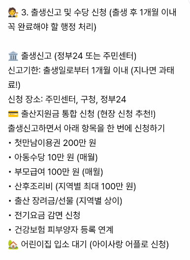 👶 3. 출생신고 및 수당 신청 (출생 후 1개월 이내 꼭 완료해야 할 행정 처리)