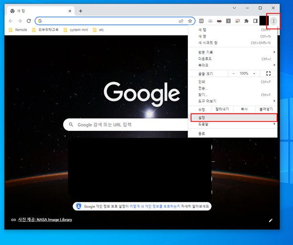 2. 크롬 우측 상단의 ***을 클리합니다.
