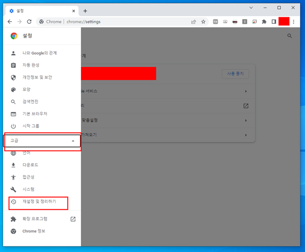 6. "재설정 및 정리하기"를 클릭하여 초기화를 진행합니다.