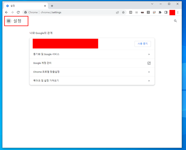 4. 아래의 화면에서 좌측 상단의 =을 클릭하여 설정 페이지를 확장할 수 있습니다.