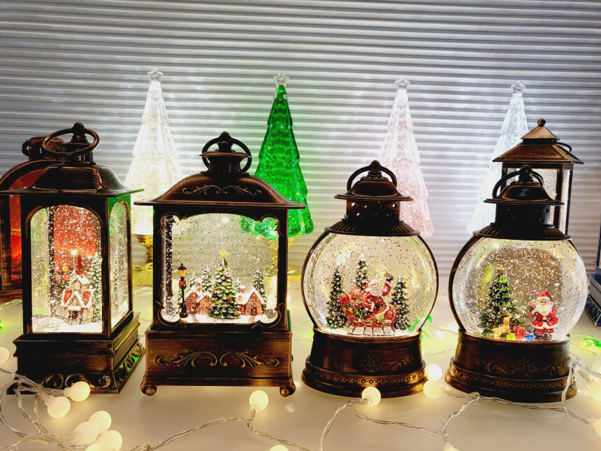크리스마스 분위기 선물 워터볼 LED 인테리어 소품 랜턴 스노우볼 오르골 무드등 캠핑조명 : 바샤