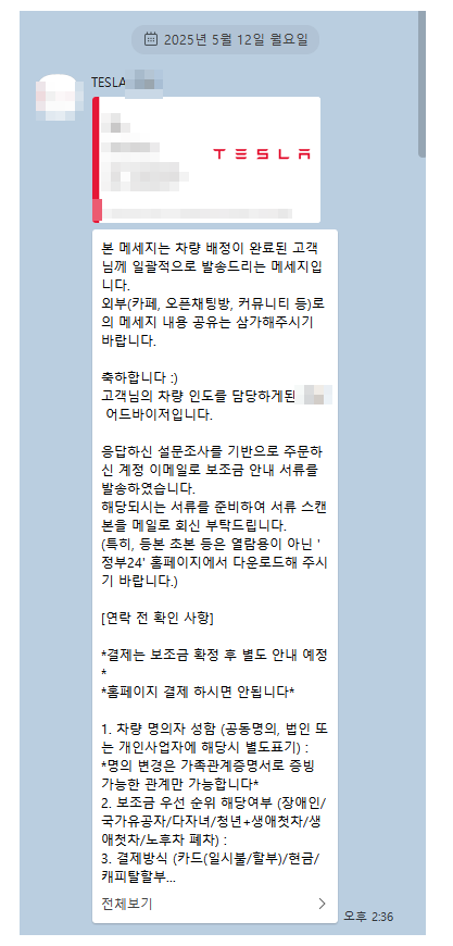 *상기 메시지는 차량 인도 대상자분들에게만 발송되는 메시지입니다.*