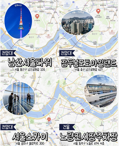 2. 여의도 공원: 나무 그늘 아래에서 편안하게 즐길 수 있는 공간으로, 가족 단위 관람객에게 적합합니다.