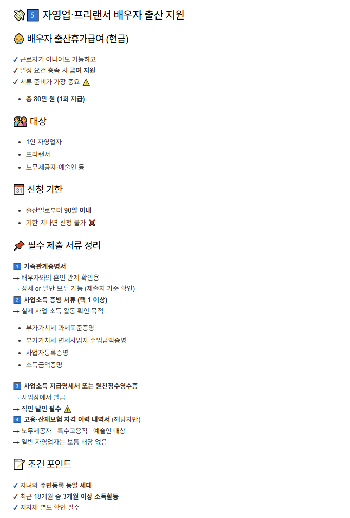 💸5️⃣ 자영업·프리랜서 배우자 출산 지원