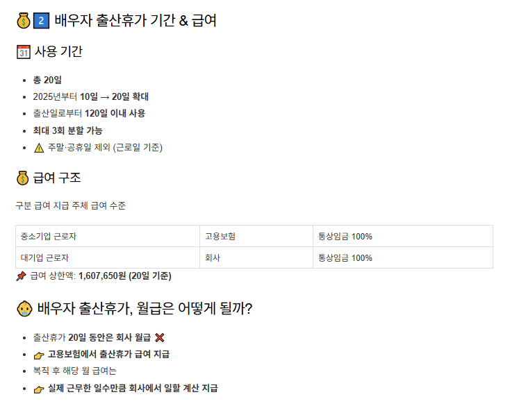 💰2️⃣ 배우자 출산휴가 기간 & 급여