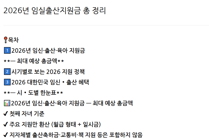 📊2026년 임신·출산·육아 지원금 — 최대 예상 총금액
