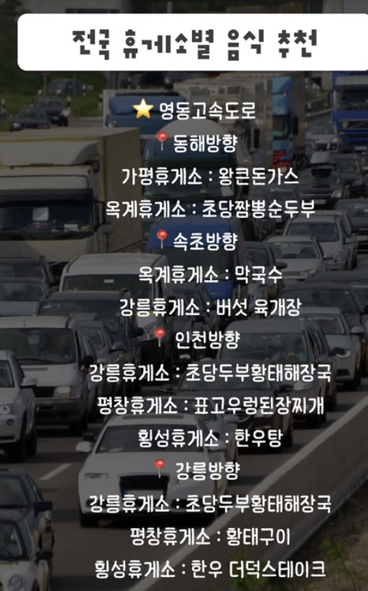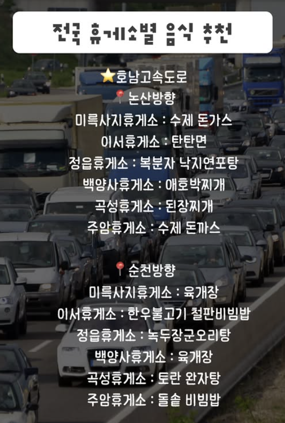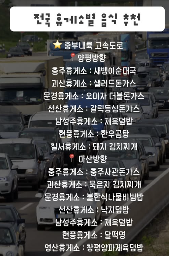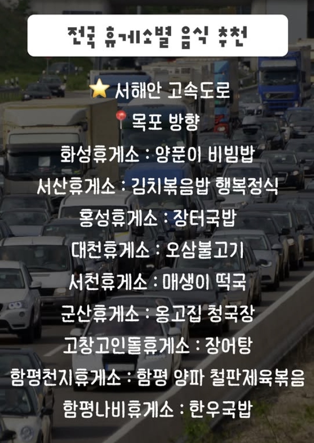 오늘은 전국 고속도로 휴게소 맛집에 대한 글을 작성해보도록 하겠습니다.