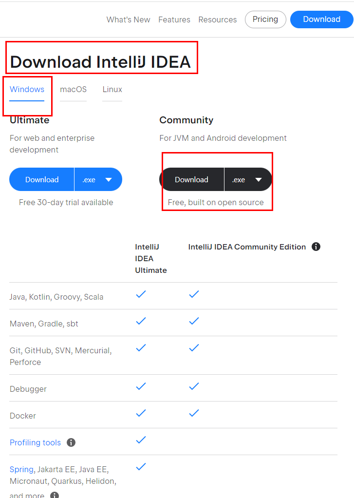 2) 운영체제를 선택한 뒤, Communuty에서 download를 진행합니다.