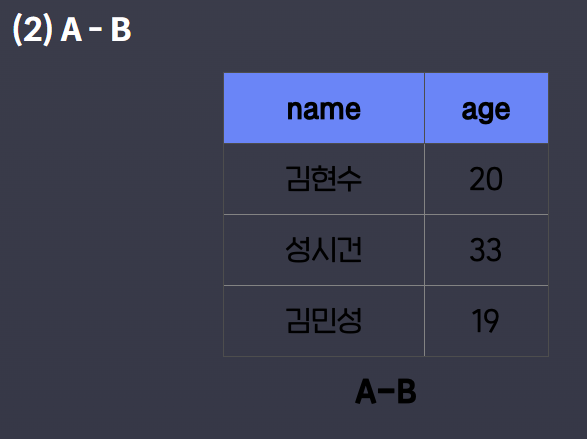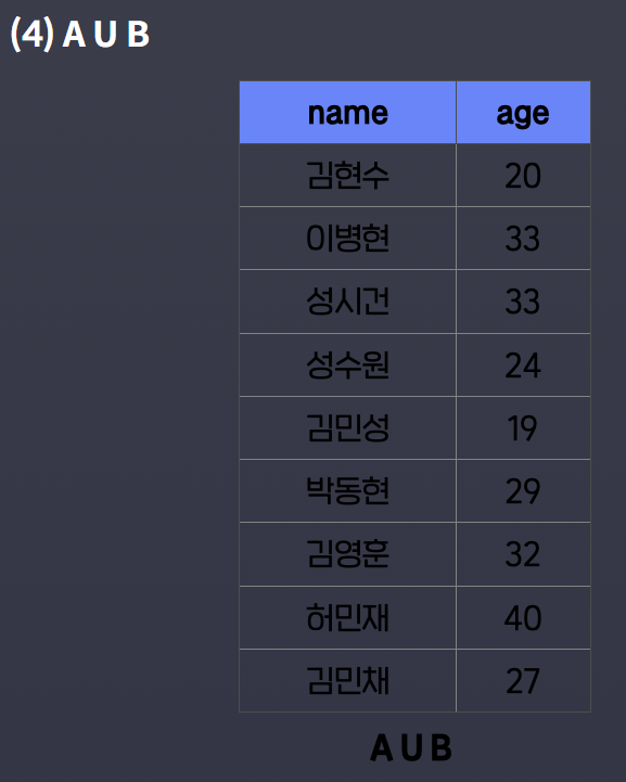MYSQL에서 사용되는 MINUS, EXCEPT, INTERSECT, UNION 연산에 대해 글을 써본다.