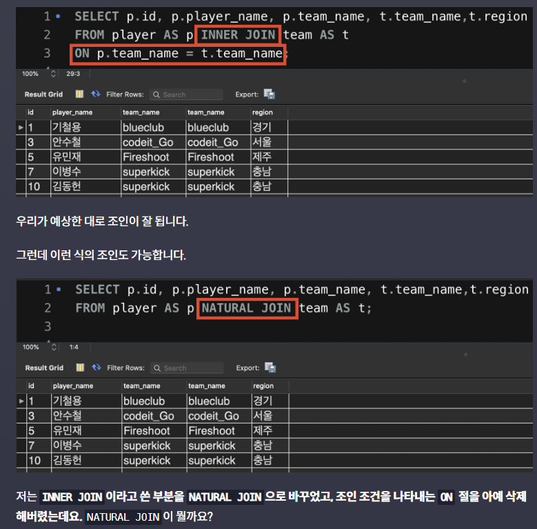 오늘은 NATURAL JOIN, CROSS JOIN, SELF JOIN, FULL OUTER JOIN, Non-equi JOIN에 대해서 설명을 기록해본다.