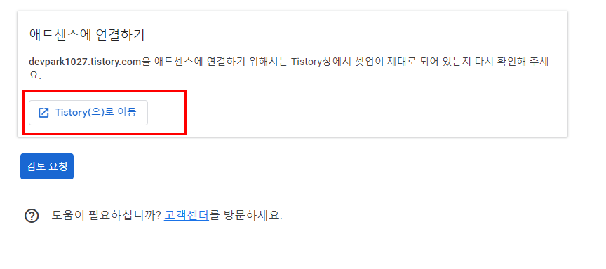 9. 아래의 화면에서 tistoty으로 이동을 클릭하여, 본인의 티스토리 블로그에서 설정을 마무리 해야합니다.