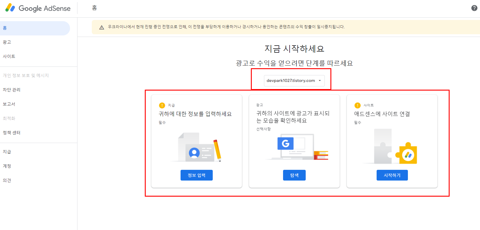 1. 구글 애드센스 사이트로 이동해야합니다.