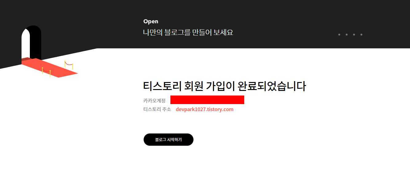 7. 카카오 계정을 통한 티스토리 가입이 완료되었습니다.