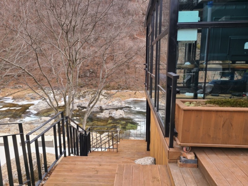 계곡이랑 카페랑 계단으로 연결되어있어