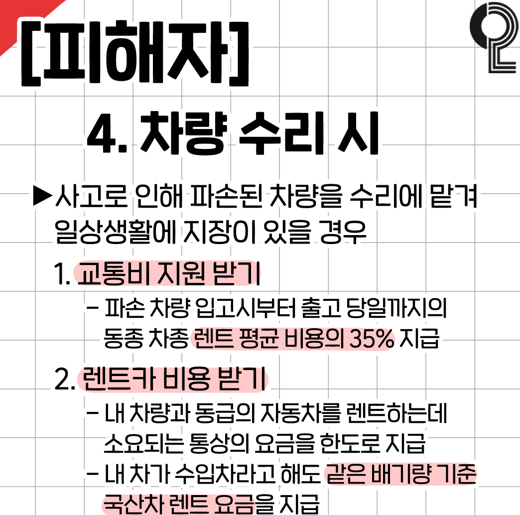 피해 차량 운전자에게 사과 후, 병원에 가서 정밀 진달 해볼 것을 권하고 빠르게 보험 처리하겠다고 말하기. 피해 차량에 동승객이 있었는지 꼭 확인하기 현장에서 상고 간 마무리 했을 경우 연락처 확인하기.