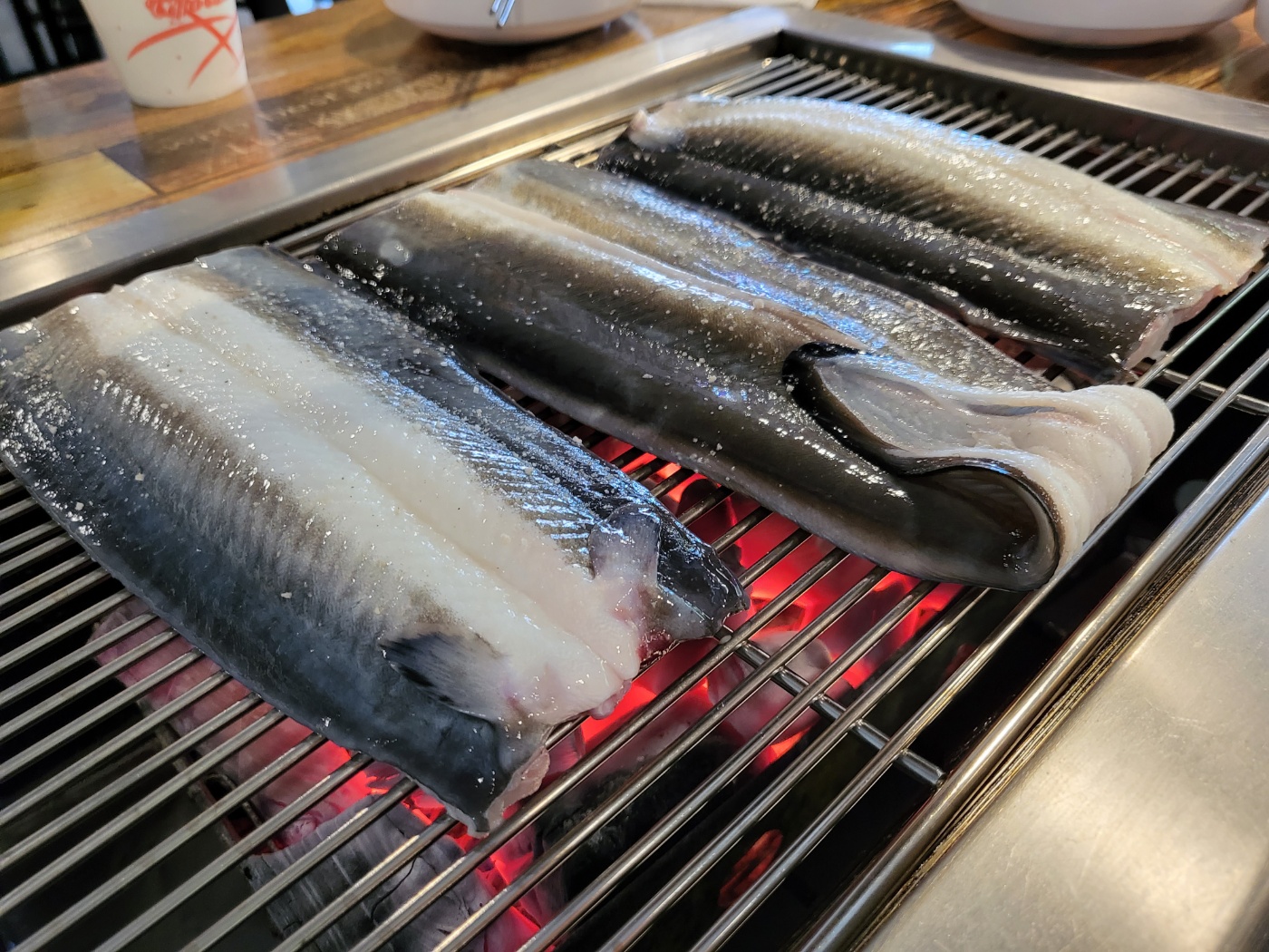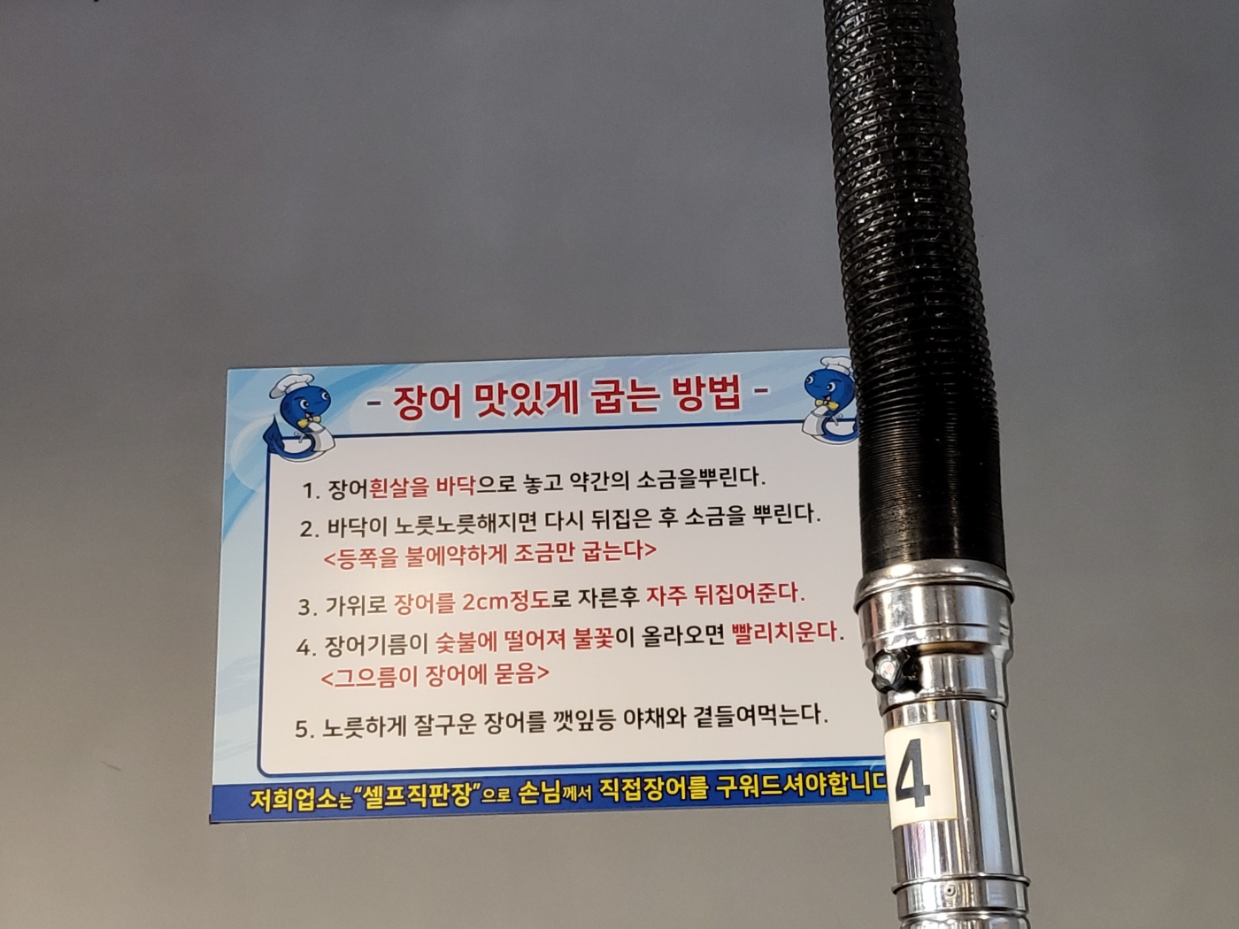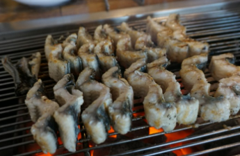 4. 장어기름이 숯불에 떨어져 붗꼴이 올라오면 빨리 치운다.