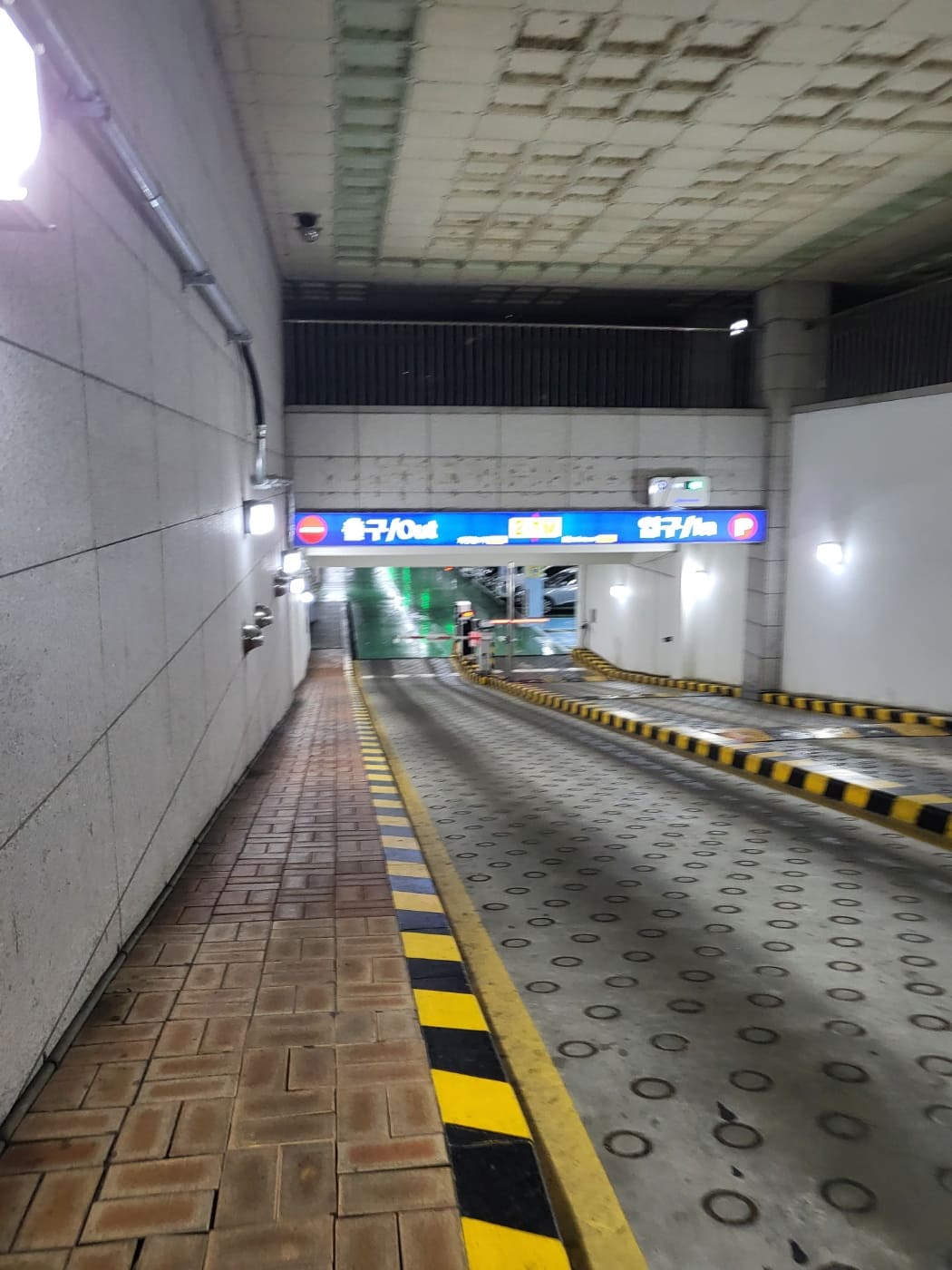 내리막길 경사로를 따라 내려가면, 주차장으로 들어갈 수 있습니다.