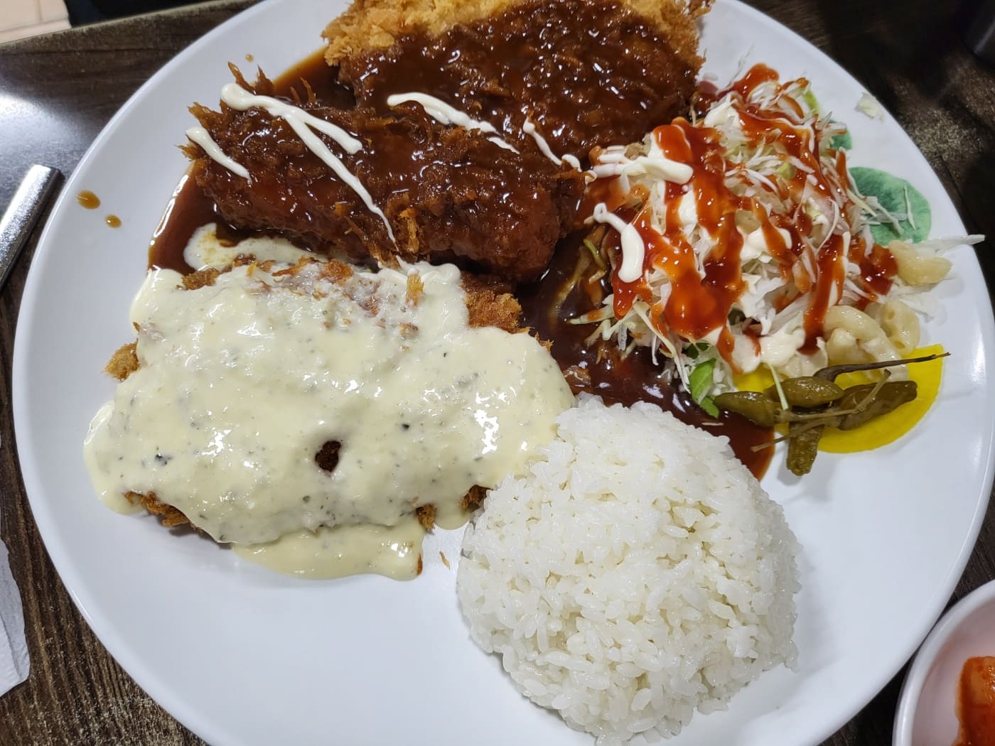 일반모듬정식 14500원과 청량돈까스 10000원을 시켜봤습니다. 일반모듬정식은 일반돈까스, 치즈돈까스, 생선까스가 포함된 세트였습니다. 3가지 맛을 한꺼번에 먹어볼 수 있어서 가성비가 좋은 것 같습니다. 돈까스는 주문 즉시 튀겨주셔서 음식이 나왔을때는 매우 바삭했습니다.