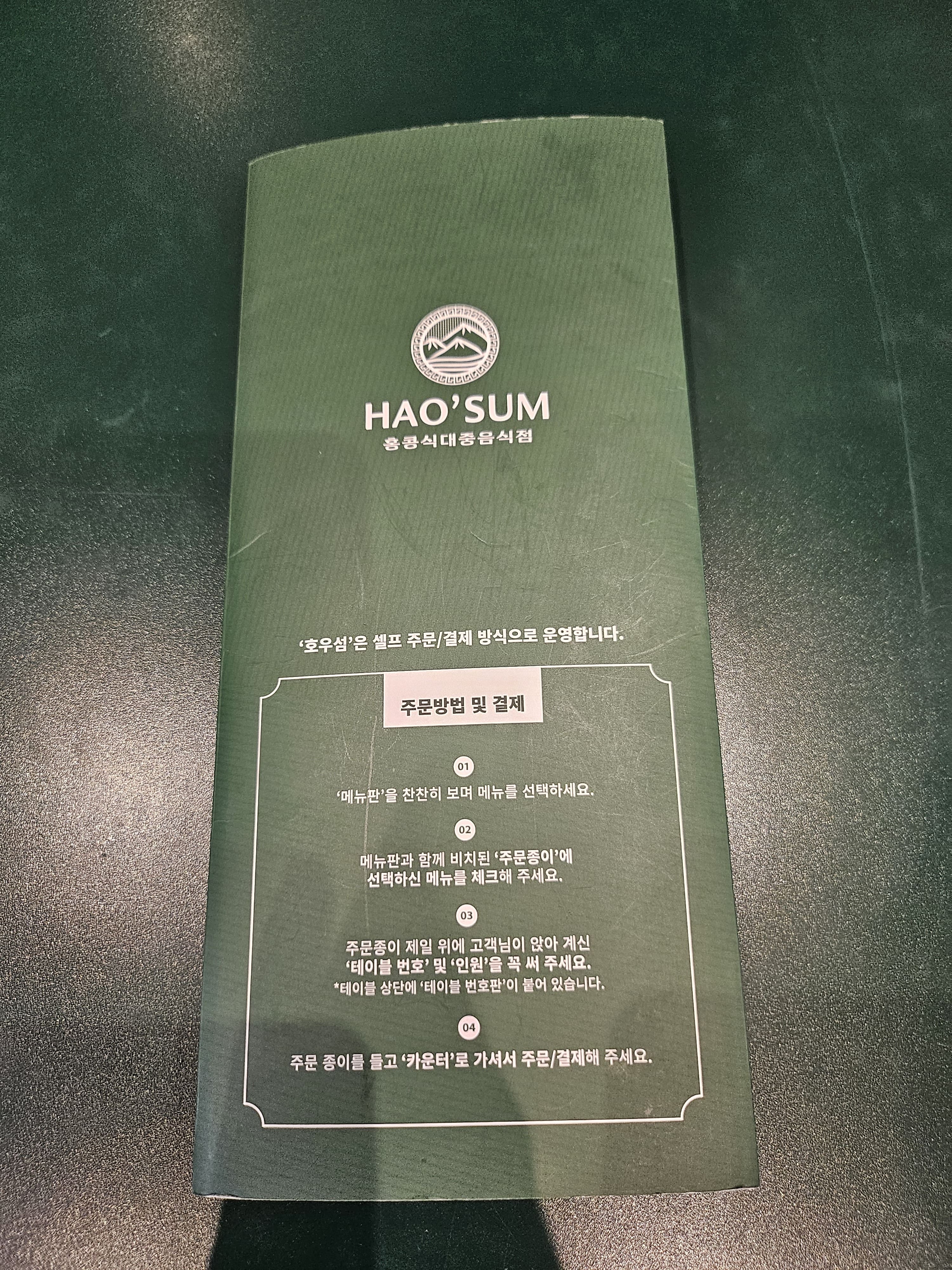 메뉴판을 찬찬히 보며 메뉴를 선택하고, 메뉴판과 함께 비치된 주문종이에 선택한 메뉴를 체크합니다. 이후 주문종이 제일 위에 앉은 테이블 번호 및 인원을 확인해서, 카운터로 가서 주문 및 결제를 하는 방식이 새로웠습니다.