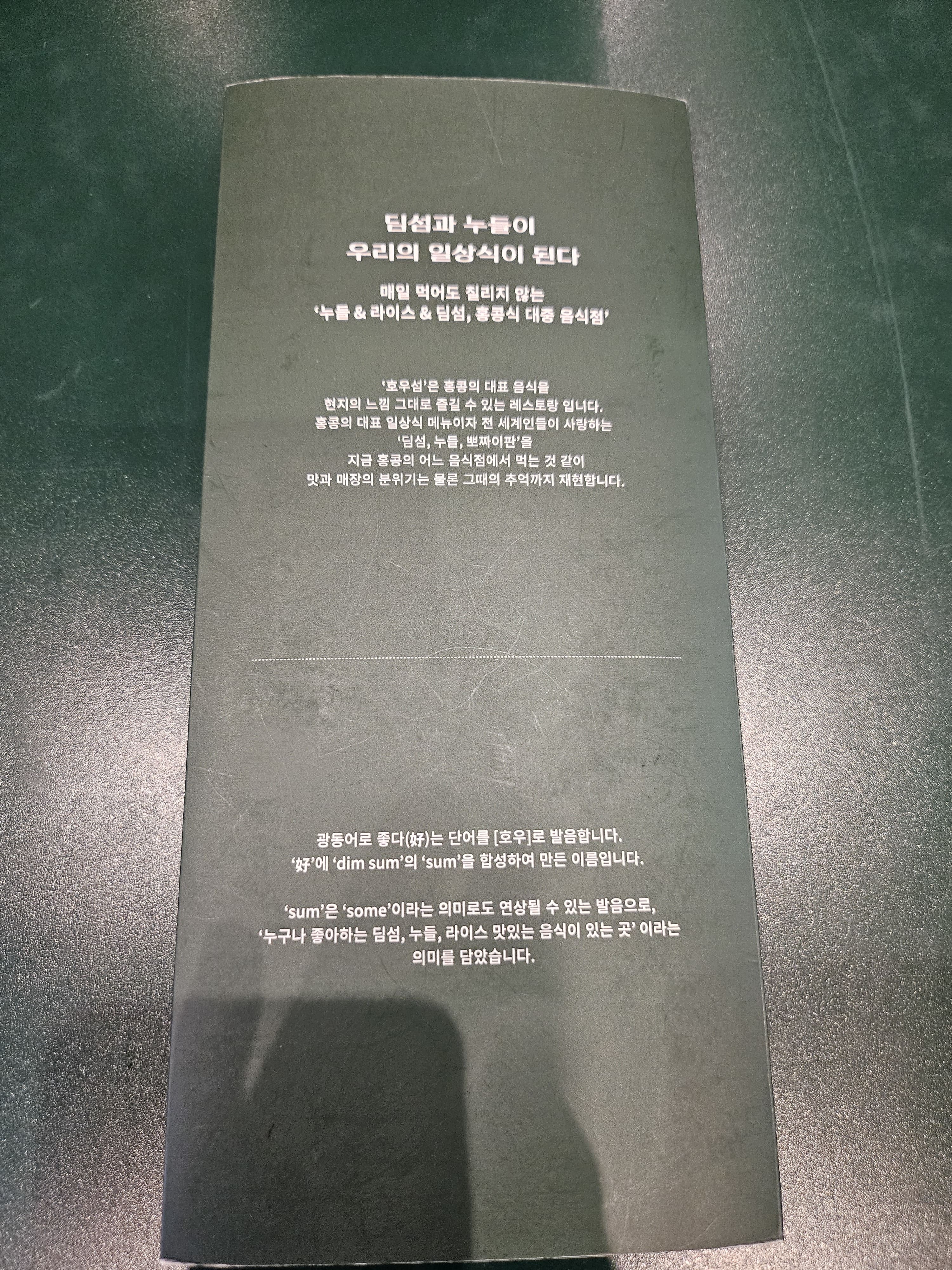 호우섬은 홍콩의 대표 음식을 현지의 느낌 그대로 즐길 수 있는 레스토랑입니다. 홍콩의 대표 일상식 메뉴이자 전 세계인들이 사랑하는 딤섬, 누들, 뽀짜이판을 지금 홍콩의 어느 어느 음식점에서 먹는 것 같이 맛과 매장의 분위기는 물론 그때의 추억까지 재현됩니다.관둥어로좋다라는 단어를 호우로 발음합니다. 호우에 딤섬의 섬을 합성하여 만든 이름입니다.