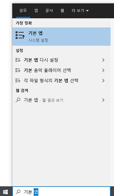 PC에서 사용을 하다보면 기본 프로그램이 변경되는 경우가 있습니다 부분에 '기본 앱'을 검색...