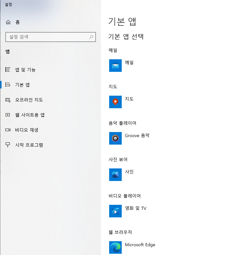 '기본 앱'에 들어가면 아래와 같이 보이실텐데요